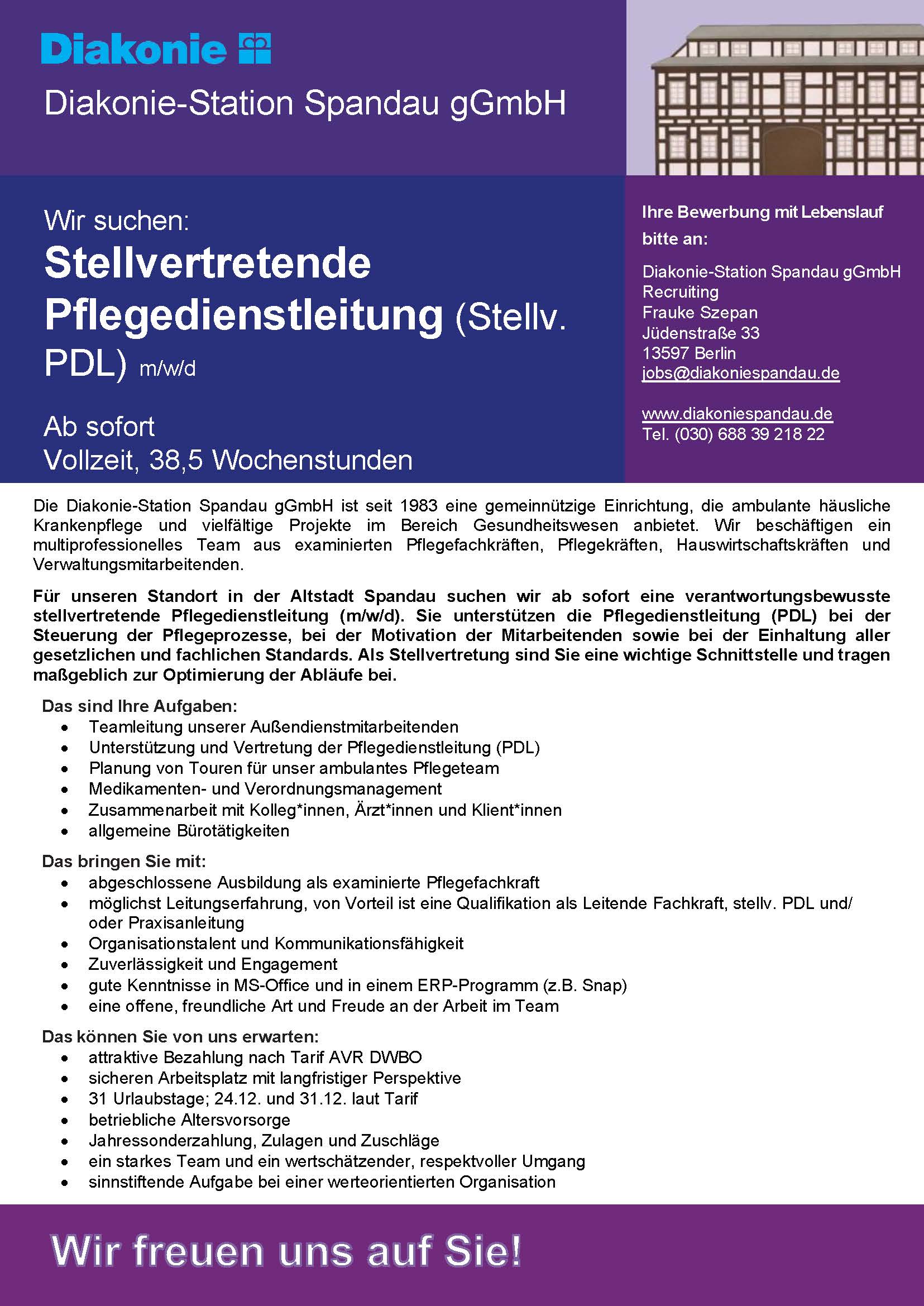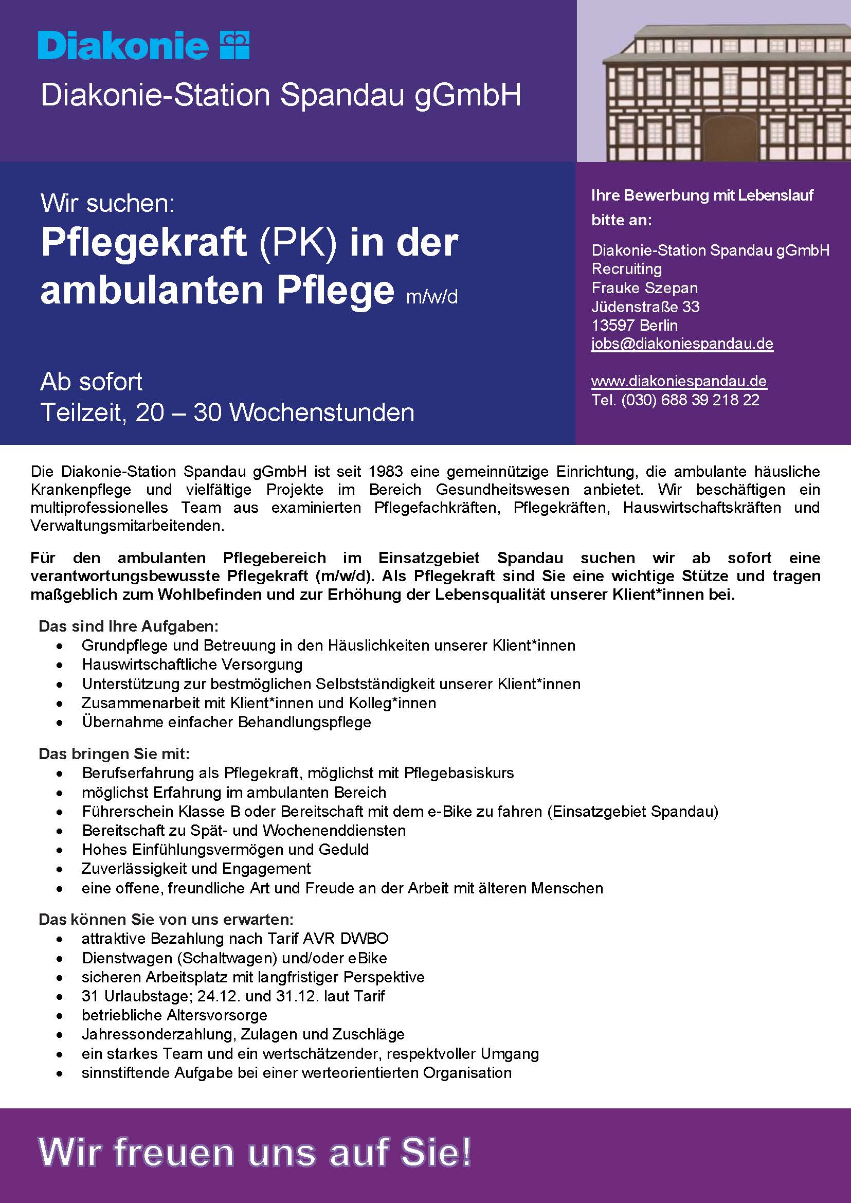 Aktuelle Stellenanzeigen bei der Diakonie-Station Spandau, in den Tagespflegen und in der Wohngemeinschaft
