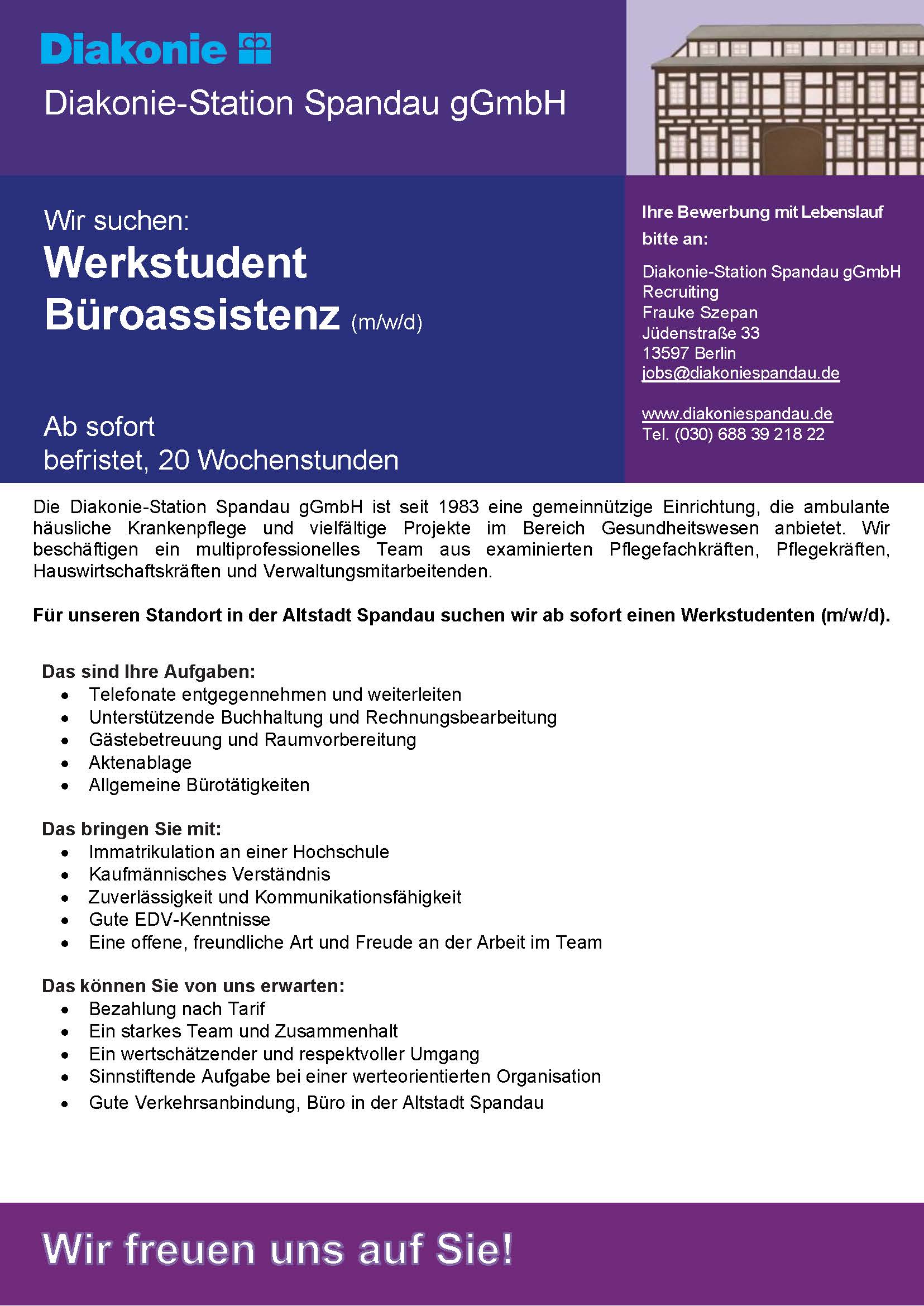 - Werkstudent Büroassistenz m/w/d, Teilzeit 20 Wochenstunden - Dringend!
